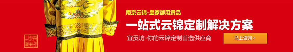 南京宜貢坊云錦文化科技有限公司成立于二OO一年,場地面積10000㎡,致力于做中國知名的云錦,宜貢坊云錦文化科技有限公司座落于江寧開發(fā)區(qū)。做為江蘇云錦文化科技品牌之一,南京宜貢坊擁有雄厚的技術(shù)力量和實力,現(xiàn)有大型傳統(tǒng)花木樓織機幾十臺,織造師、研究設(shè)計人員數(shù)百人。公司擁有直屬北京、深圳、上海辦事處和近千家緊密經(jīng)銷商、合作商;產(chǎn)品在南京中央商場、新百、上海八百伴、上海友誼商場,泰州金鷹等全國多家大型商場均有專柜。